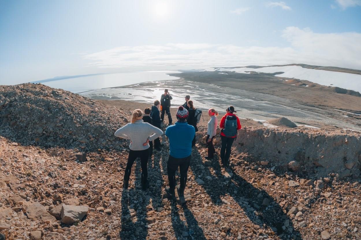 Landing and hike on Ytre Norskøya, up to bird cliff (little auk), arctic tern colony, and common eider and goose nesting area.